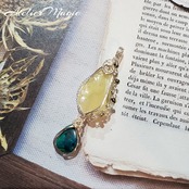 北海道産のオパール原石と、マラカイトクリソコラのラフタンブルを組み合わせ、ワイヤーで巻き、揺れる二連のペンダントトップにお仕立てしました。