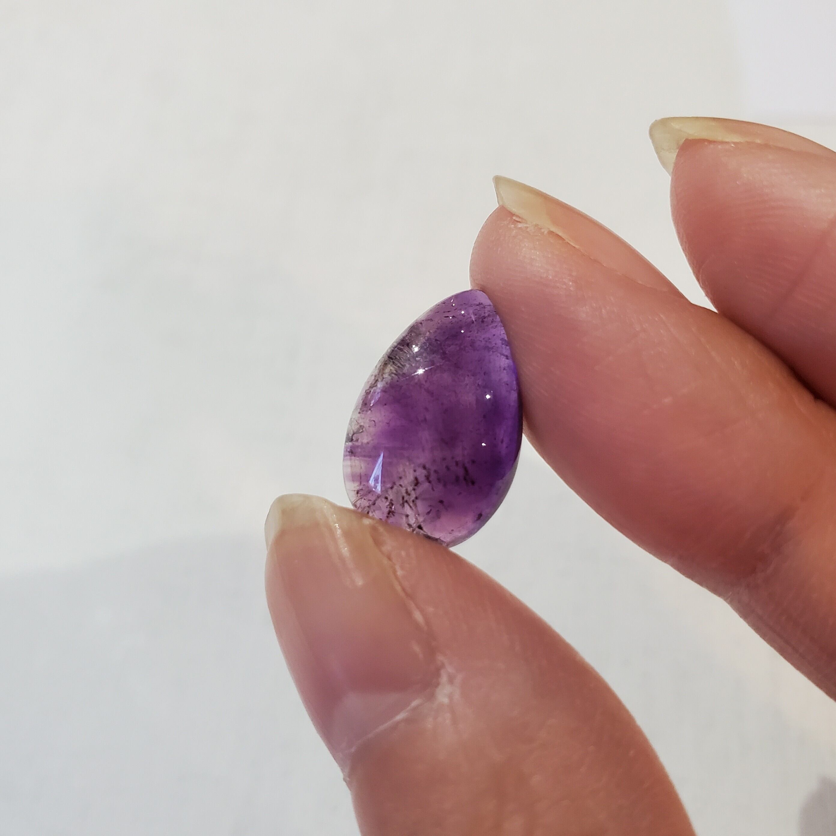 深みのある美しいアメジストエレスチャルの雫型のルースを、ワイヤーで巻いてペンダントトップに仕立てました。