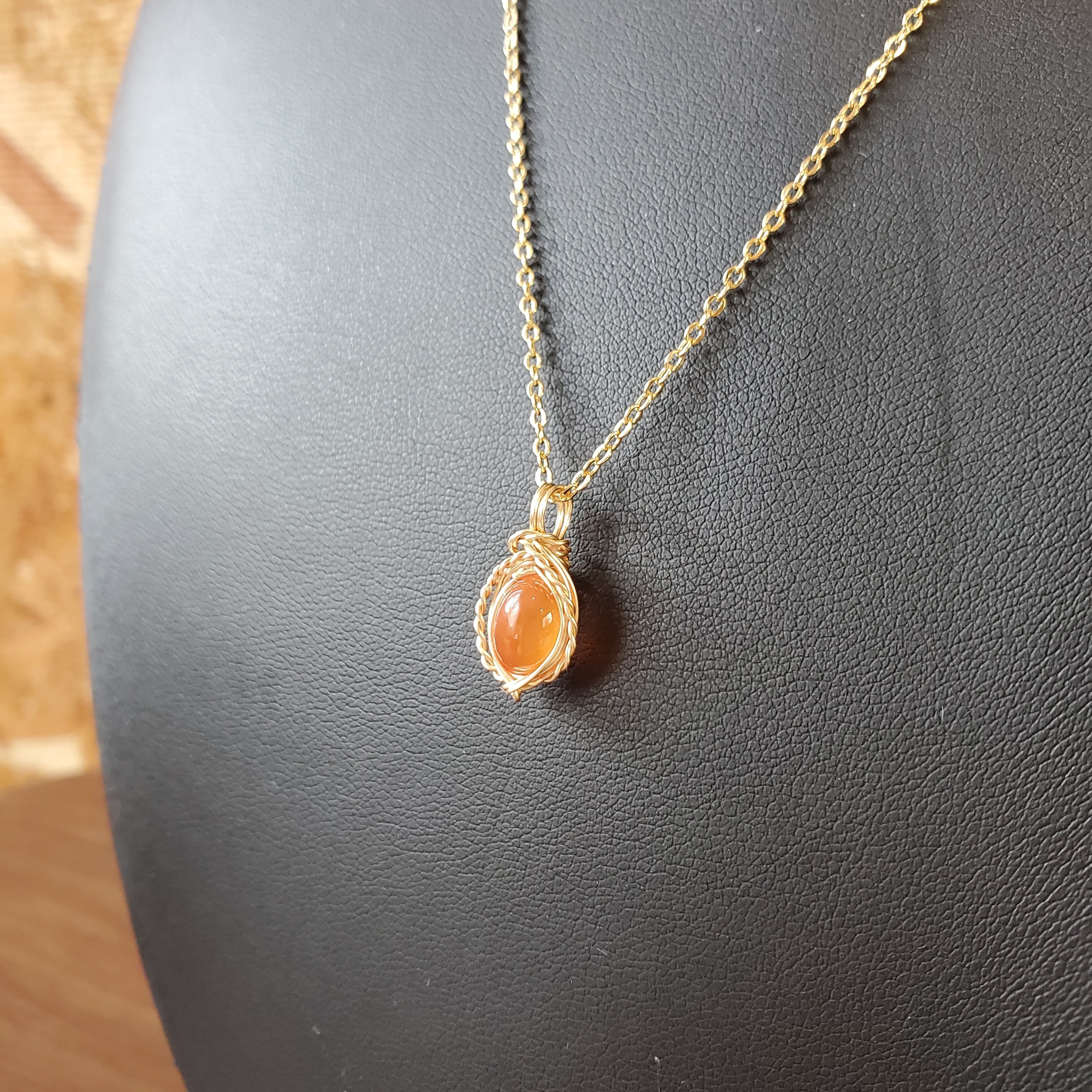 艶やかなカーネリアンのドームカボションを、ワイヤーで巻いてペンダントトップに仕立てました。